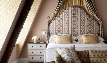 Kit Kemp’s custom textiles in each of the individually outfitted rooms are a study in elaborate detail and dramatic patterns.